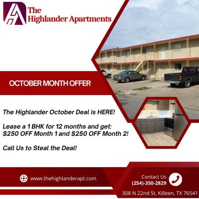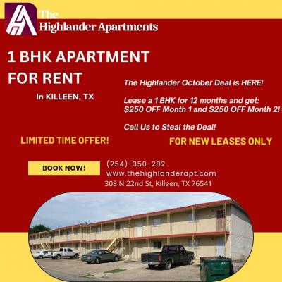 Looking for a 1 bedroom flat in Killeen, TX? Highlander Apartments offers affordable rentals with spacious layouts, comfort, and easy access to nearby essentials. know more at https://thehighlanderapt...