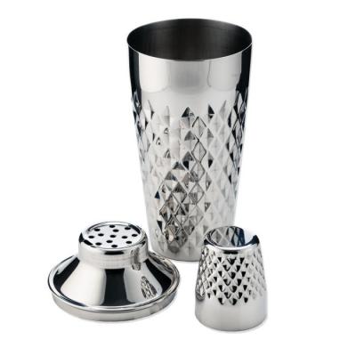 The Stainless Steel Faceted Cocktail Shaker by Viski® is a stylish and durable bar equipment made from high-quality stainless steel with a 25 oz capacity and a built-in strainer. Its faceted, diamo...