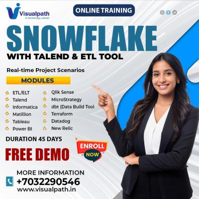 Visualpath provides the Best Snowflake Online Training Course with Job Oriented Training. Learn cloud data warehousing and Snowflake Training from expert trainers. Accessible worldwide, including USA,...