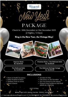 Looking for a peaceful New Year stay in the hills? Choose the Heritage hotel New Year package Nainital offered by Vikram vintage inn. This special package brings together old-world charm, cosy rooms, ...