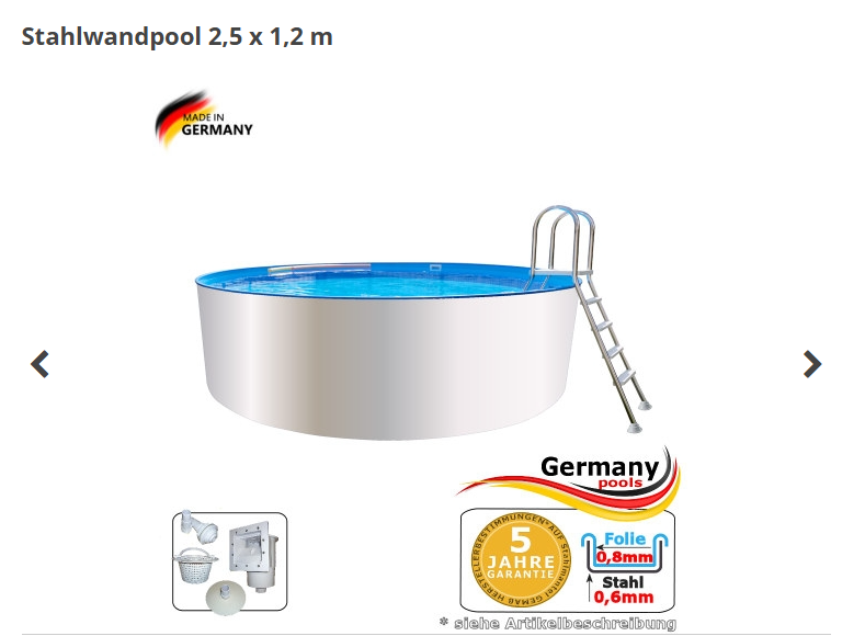 Stahlwandpool 2,5 x 1,2 m Rundpool | Pool.Net