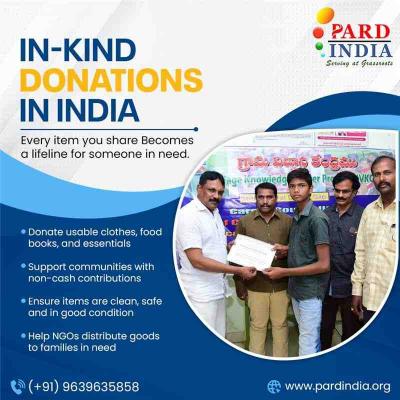 An in-kind contribution in India is the provision of goods and services rather than financial support. These contributions may be food, clothes, office supplies and/or skilled professional services. I...