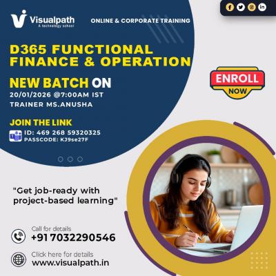 Visualpath provides Microsoft Dynamics 365 F&O Course online prepares professionals to manage financial operations using real-world business scenarios. The training aligns with Microsoft Dynamics...
