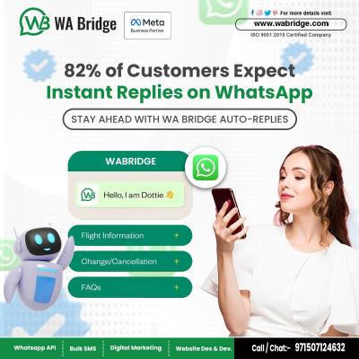 82% of customers expect instant responses on WhatsApp. Stay ahead with WA Bridge auto-replies and deliver personalized, real-time engagement to your customers. Our WhatsApp automation solution helps b...