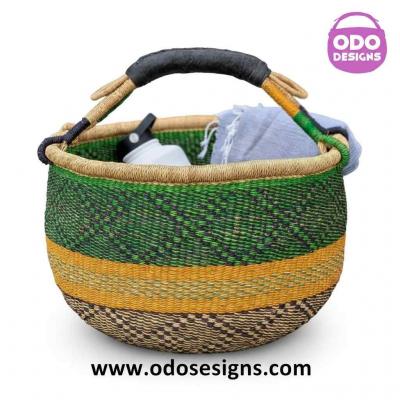 Large Pink Yellow Checked Round Bolga Basket | Odo Designs