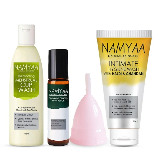 Namyaa Period Care Kit includes a high-quality menstrual cup that is reusable and eco-friendly, along with a free menstrual cup wash and period cramp roll-on.Buy now - https://namyaa.in/products/perio...
