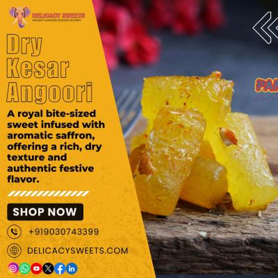 Dry Kesar Angoori Petha is a premium bite-sized Indian sweet infused with aromatic saffron, offering a rich dry texture and balanced sweetness. Perfect for festive gifting and celebrations, it delive...