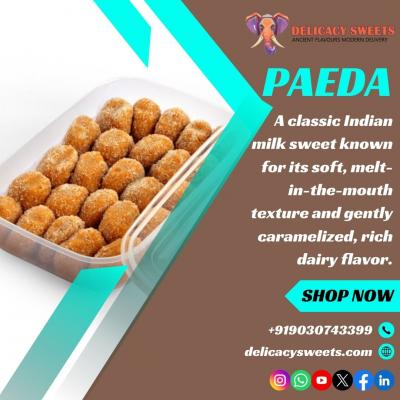Paeda is a traditional Indian milk sweet made from slow-cooked milk solids, known for its soft, melt-in-the-mouth texture and rich caramelized flavor. A timeless mithai enjoyed during festivals, ritua...