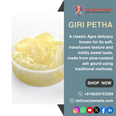 Giri Petha is a classic Agra sweet made from slow-cooked ash gourd, known for its soft, translucent texture and mild sweetness. Pure, light, and delicately flavored, it is enjoyed as a traditional mit...