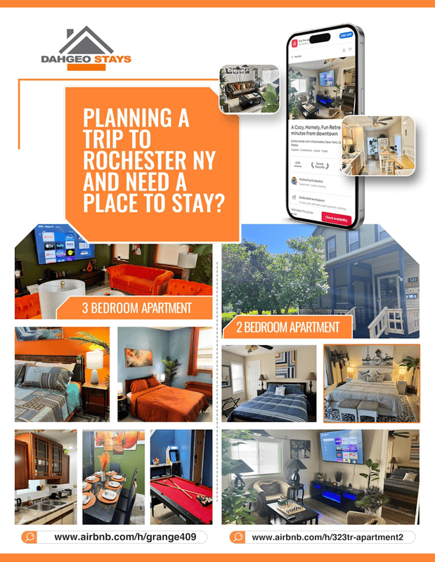 Planning a trip to Rochester, NY? We've got you covered with excellent short-term rentals. Choose comfort and convenience for your stay! Check out these great options: We offer: A spacious 3-be...