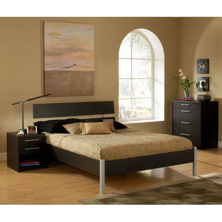 This black metal bed frame with wood slats fits standard mattresses. No