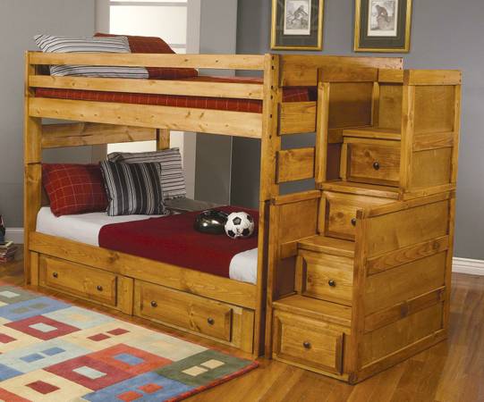 natural finishALL WOOD **BUNKBED**FULL/FULL w/stairs/storage