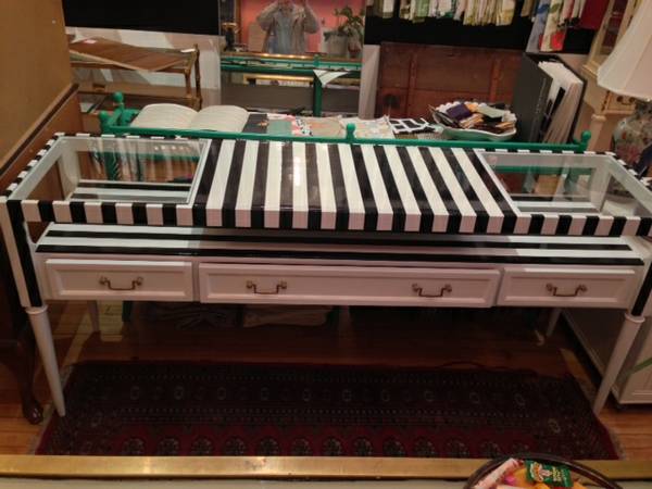 Vintage lacquered black and white stripped Console