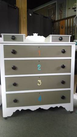drawer fronts painted in linen with whimsical numbers. Four drawers for