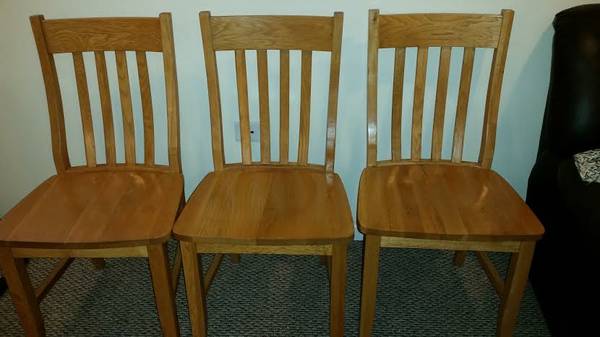 Set of 3 chairs. Very sturdy and in great condition. Some minor scratches on seats.