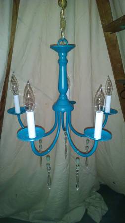 Beautifully updated vintage chandelier in teal. Accented with antique