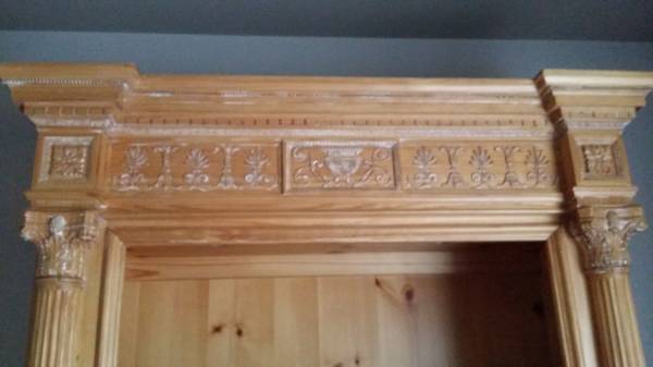 Hand carved with lighting and lower cabinet like new condition.