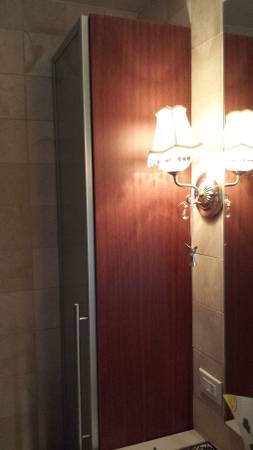 IKEA bathroom linen cabinet - dark wood