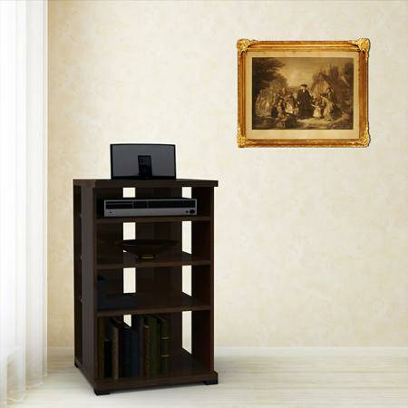 Simple and functional, this Truffle Wood Audio Cabinet has a