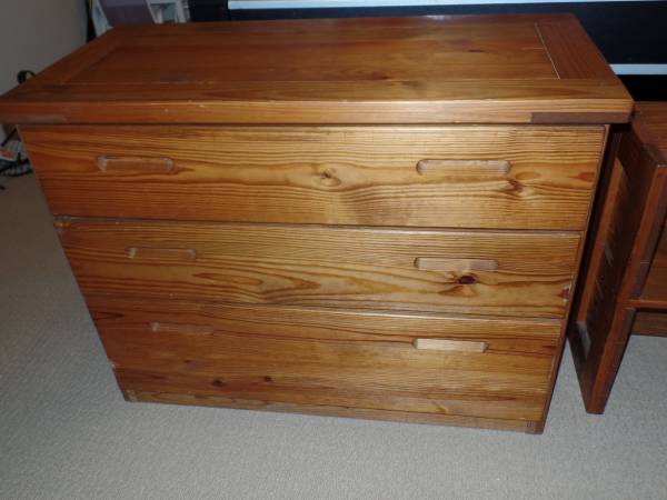 This End Up solid yellow pine dresser and book shelves. The dresser is