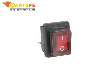 The Globe U03041215027 Red Lighted Rocker Switch with 1/4" Tab Terminals is designed to provide clear visual indication and control for various commercial kitchen appliances. Featuring a red lighted d...