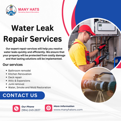 Manyhats provides expert water leak repair services in Durham, Cary, Carrboro, Hillsborough, and Morrisville, North Carolina. We provide fast, reliable leak detection, pipe repair, and water damage re...