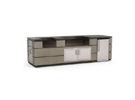 Outdoor Kitchen Contemporary Island Bundle with Black Lava Counter brings style, functionality, and sophistication to your backyard. Crafted for performance and durability, this bundle features a sl...