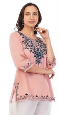 Kronia Pink Embroidered Cotton Kurta – Stylish & Comfy