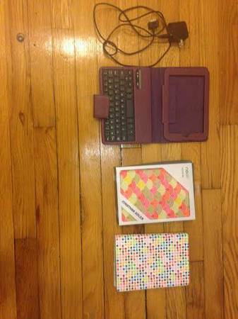 box), a flip up Bluetooth keyboard cover, and the charging...