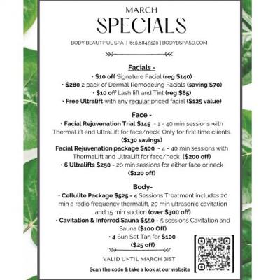 Indulge in the ultimate relaxation with Body Beautiful Spa’s exclusive March special offers on premium skincare and body treatments in San Diego! Whether you’re looking to rejuvenate you...