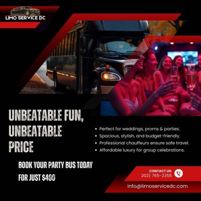 Celebrate in style with our Party Bus for $400!