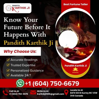 Pandith Karthik Ji is known as the best fortune teller in Vancouver, offering deep knowledge and accurate predictions to guide you toward a brighter future. Our expertise in astrology, palm reading, n...