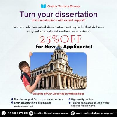 Online Tutors Group provides the best dissertation writing help UK, offering students expert guidance to succeed in their academic journey. We ensure each dissertation is thoroughly researched, well-s...