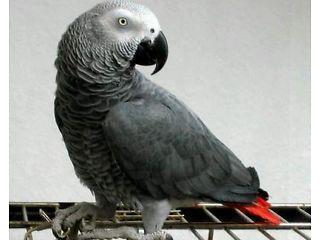 African grey who is an excellent talker. 3 years old, was told it was a boy when we got him. He is a very friendly parrot and says lots of things. Feathers are in very good condition. Includes a lovel...