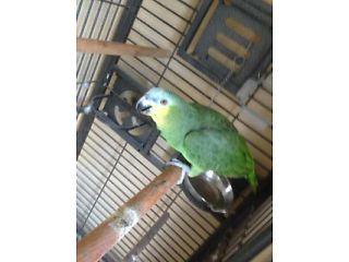 GREEN AMAZON PARROT MALE BLUE WING TIPS VERY BEAUTIFUL AND HEALTHY PARROT NOT HAND TAME COMES WITH VERY LARGE GAGE TOYS / FOOD WOULD MAKE VERY NICE COMPANY AS HE LIKES TO BE SPOILED SAYING A FEW WORDS...