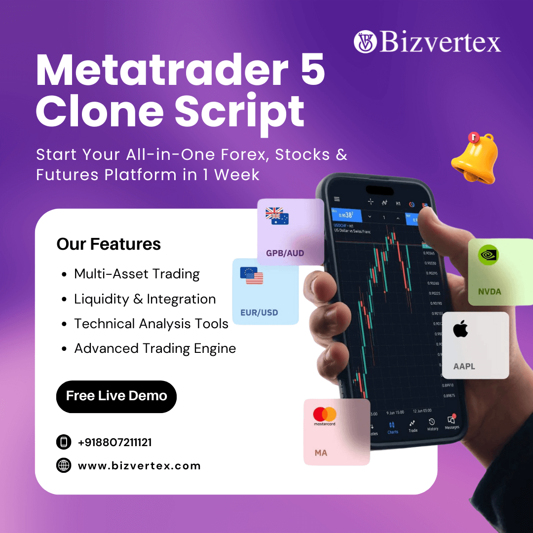 Kickstart your own Forex, Stocks, and Futures platform with our ready-made MT5 Clone Script – fully customizable, secure, and feature-packed to empower global traders.We at Bizvertex offer a premium...