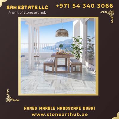Elevate your outdoor spaces with Honed Marble Hardscape Dubai solutions by SAH ESTATE LLC. Our premium honed marble adds a touch of elegance, durability, and timeless appeal to patios, walkways, pool ...