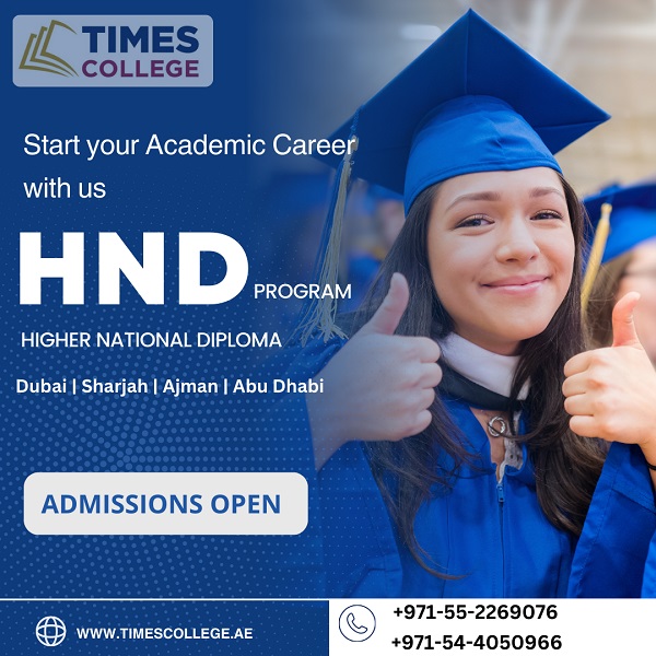 Enroll in an HND course in Sharjah at Times College and gain practical skills for a successful career. Flexible study options and globally recognized certification available. Apply today! Call us on...