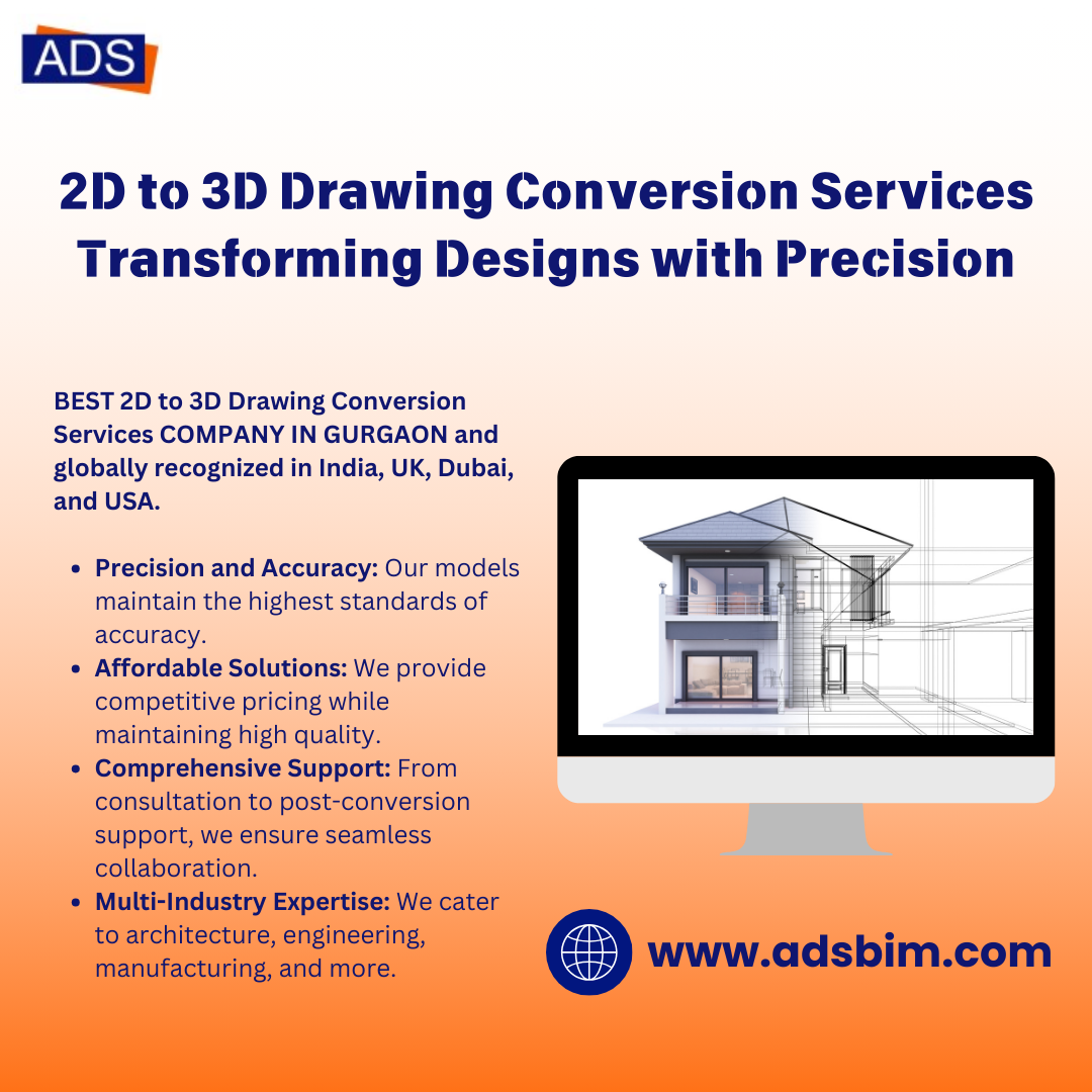 Discover the power of 2D to 3D drawing conversion services with ADSBIM, the leading provider of precision-driven solutions in Gurgaon, India, UK, Dubai, and the USA. Our expert team transforms flat ...