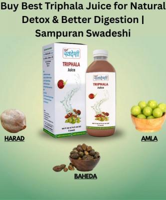 Buy the best Triphala Juice from Sampuran Swadeshi, a natural Ayurvedic blend for detox and digestion. Enriched with the goodness of Amla, Haritaki, and Bibhitaki, it helps cleanse toxins, improve met...