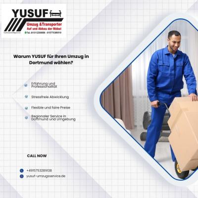 Suchen Sie ein zuverlässiges Umzugsunternehmen in Dortmund? YUSUF Umzugsservice ist Ihr professioneller Partner für stressfreie und preiswerte Umzüge aller Art. Ob Privatumzug, Firmenumzug, Möbelt...