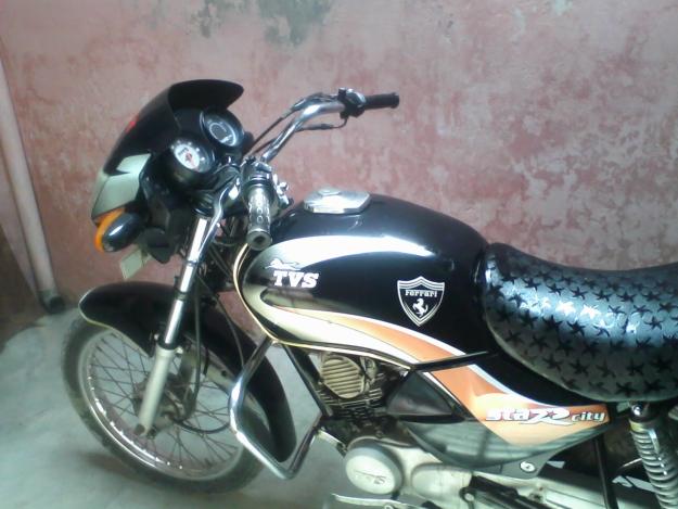 In a good condition with of 40-45 kmpl . Engine is renewed block and piston both are new. Black metallic colour with radial tyres and alloy wheels.
