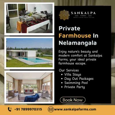 Sankalapa Farms is a leading private farmhouse destination in Nelamangala, Bangalore. We provide a luxurious farmhouse experience surrounded by lush greenery, fresh air and peaceful landscapes. Our sp...