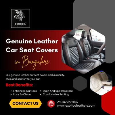Exotica Leathers offers the Best Genuine Leather Car Seat Covers in Bangalore, designed for luxury and long-lasting comfort. We use premium-grade leather to ensure unmatched durability, style and cust...