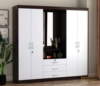 Maximize storage and enhance your space with the Celestin wardrobe almirah. Featuring four spacious doors, a built-in dressing table, and a flowery wenge-frosty white finish, this piece combines elega...