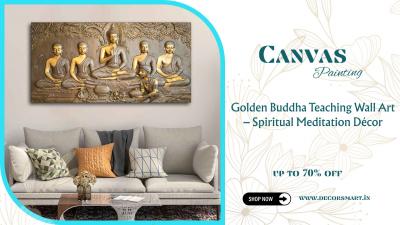 Enhance your space with this elegant Golden Buddha Teaching Wall Art, a serene canvas painting that symbolizes peace and enlightenment. This beautifully detailed Buddha wall painting is perfect for me...