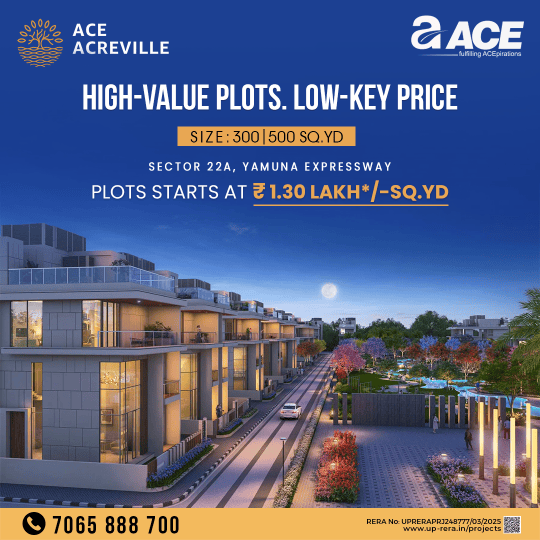 Ace Acreville is a landmark plotted development in Sector 22A, Yamuna Expressway, offering premium residential plots of 300 and 500 Sq. Yd. at prices starting from ₹1.30 Lakh per Sq. Yd. Designed fo...