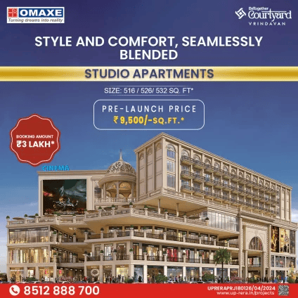 Omaxe Courtyard Vrindavan offers thoughtfully designed Studio Apartments in the divine and peaceful surroundings of Vrindavan. The project is ideal for devotees, retirees, weekend home buyers, and inv...