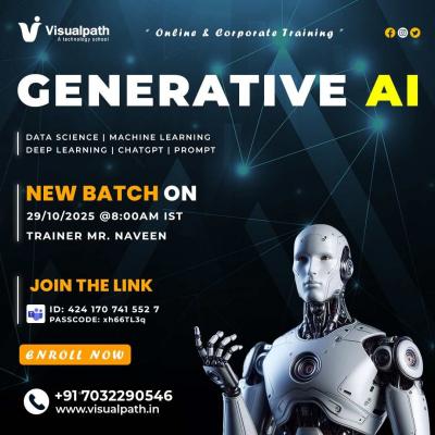 Become a Generative AI Expert with Visualpath’s hands-on online training.Topics: Data Science, ML, Deep Learning, ChatGPT & Prompt EngineeringTrainer: Mr. NaveenStarts: 29th Oct 2025 | 8:00 AM I...