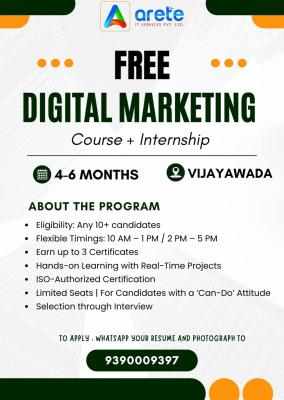 Arete IT Services Pvt. Ltd. is offering a 4–6 Month Free Digital Marketing Training with Internship. Learn from experts, work on real-time projects, and earn up to 3 ISO-authorized certificates.